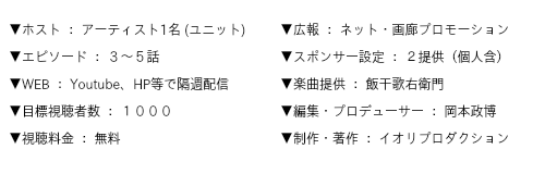 文化・芸術の創造活動を発信するクリエイティブ業界全般のプラットホームとして発展させるべくオルタナティブな試みとして始動したイオリプロダクションは、動画配信サービス「イオリチャンネル」を開始しました。先ずはアーティストをプログラム(番組)のホスト役に迎え、カルチャーバラエティー・プログラムとして本格配信します。第1回目配信はプログラム名(番組名)『ポボスとエレオス』、プログラムテーマは『欲』、1人目のホストは栗原一成(美術家・多摩美大准教授)を抜擢し2016年、今夏より定期配信しています。IT技術の発展によりスマートフォンなどのデバイス普及や高速通信環境の整備、YouTubeなど動画配信コンテンツの充実により、インターネット動画を配信することは既に一般的となりました。子ども達の“将来の夢”としてランクインしたYouTuber/ユーチューバーなど誰でもが場所を問わず動画を配信する現在、文化・芸術に携わる事業者として、歴史を踏まえながら改めて『文化・芸術』を異なる視点から捉え広範に発信する事を目指しています。また、今後新たなプログラム(番組)配信も予定しております。ぜひ、メセナ活動、ブランド認知アップ・PRの絶好の機会となります。この目的に賛同してくださる企業・団体様、個人の皆さまの協賛をお待ちしております。